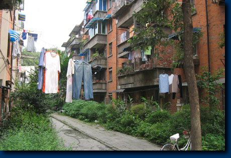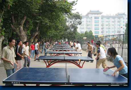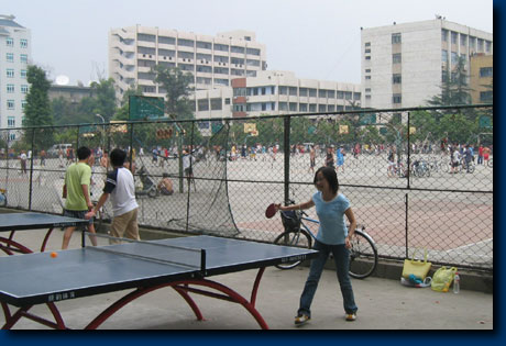 Sichuanesen sind gut im Tischtennis (im Hintergrund: Lehrgebäude
